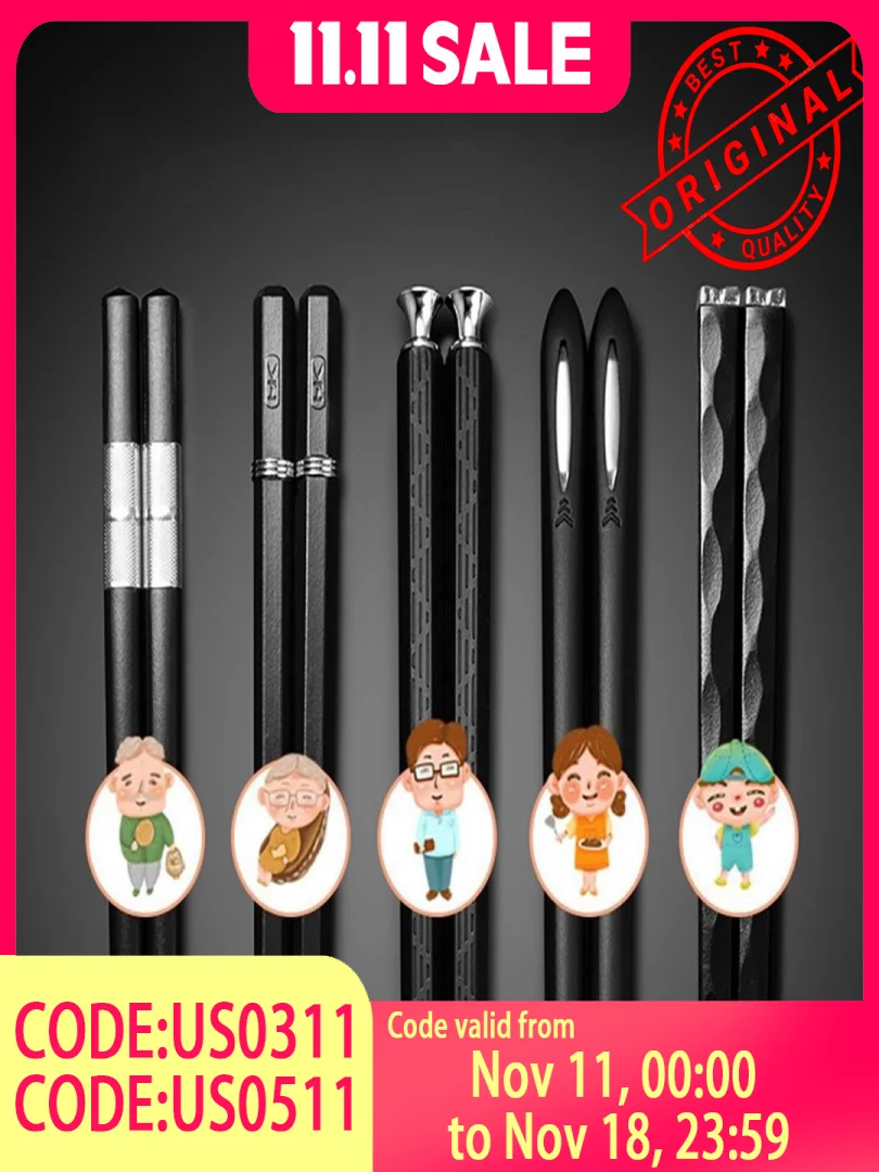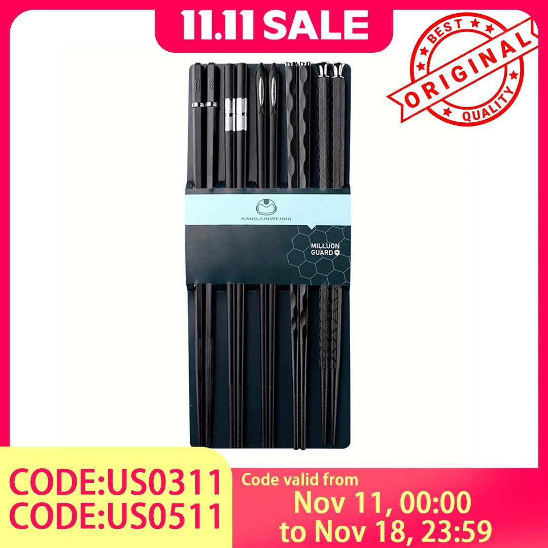 10-Pack Black Alloy Chopsticks - Super Bowl Asian Appetizer Set for Sushi & Noodle Nights.