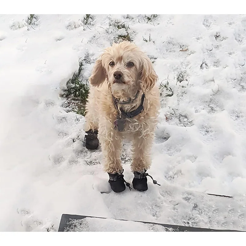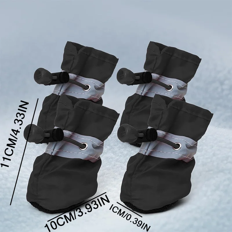 4Pcs Dog Boots Waterproof Non-slip Sole with Reflective Strip Adjustable Drawstring Soft Breathable Lining for Small Dogs