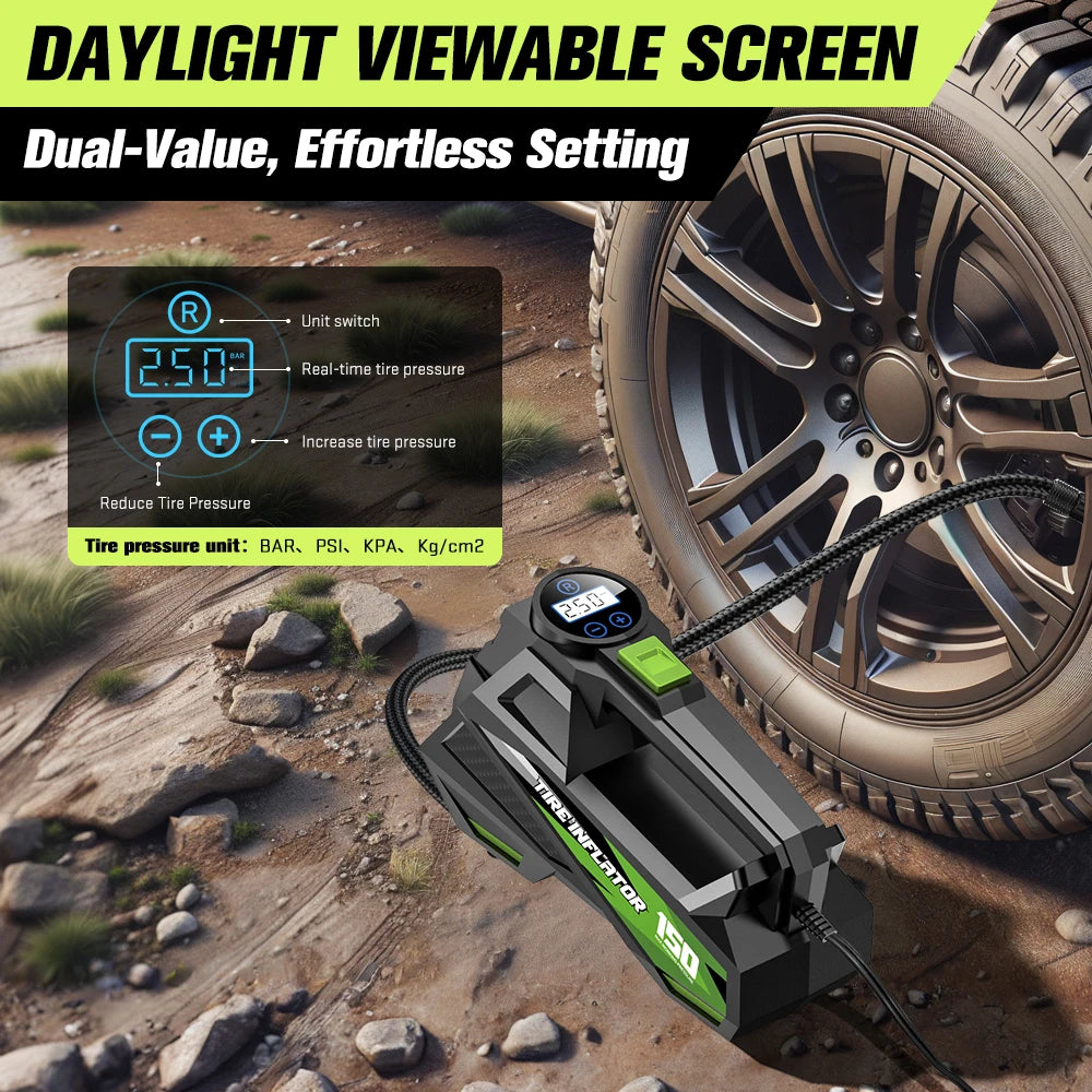 Whether you're preparing for a road trip, commuting daily, or just want peace of mind on the road, the CARSUN Portable Air Pump ensures you're always prepared. Keep your tires properly inflated for better fuel efficiency, safer handling, and extended tire life. It's the smart investment every driver should make.