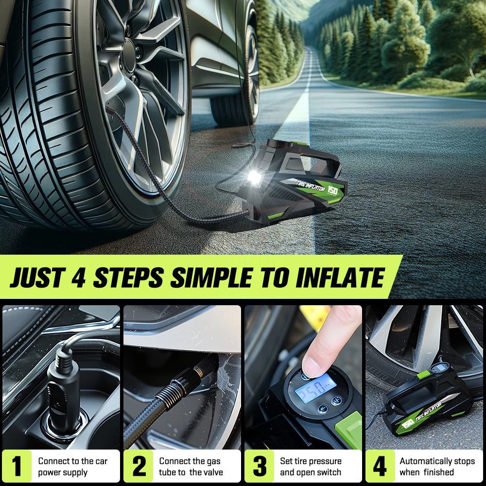 - Versatile Performance: Perfect for inflating car tires, motorcycle tires, bicycle tires, and even sports equipment