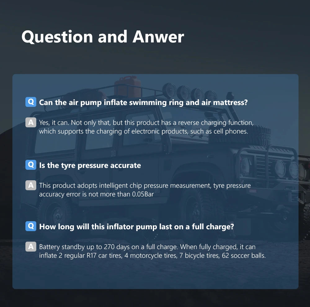 - Precision Digital Display: LED screen with 0.05 bar accuracy provides real-time tire pressure monitoring