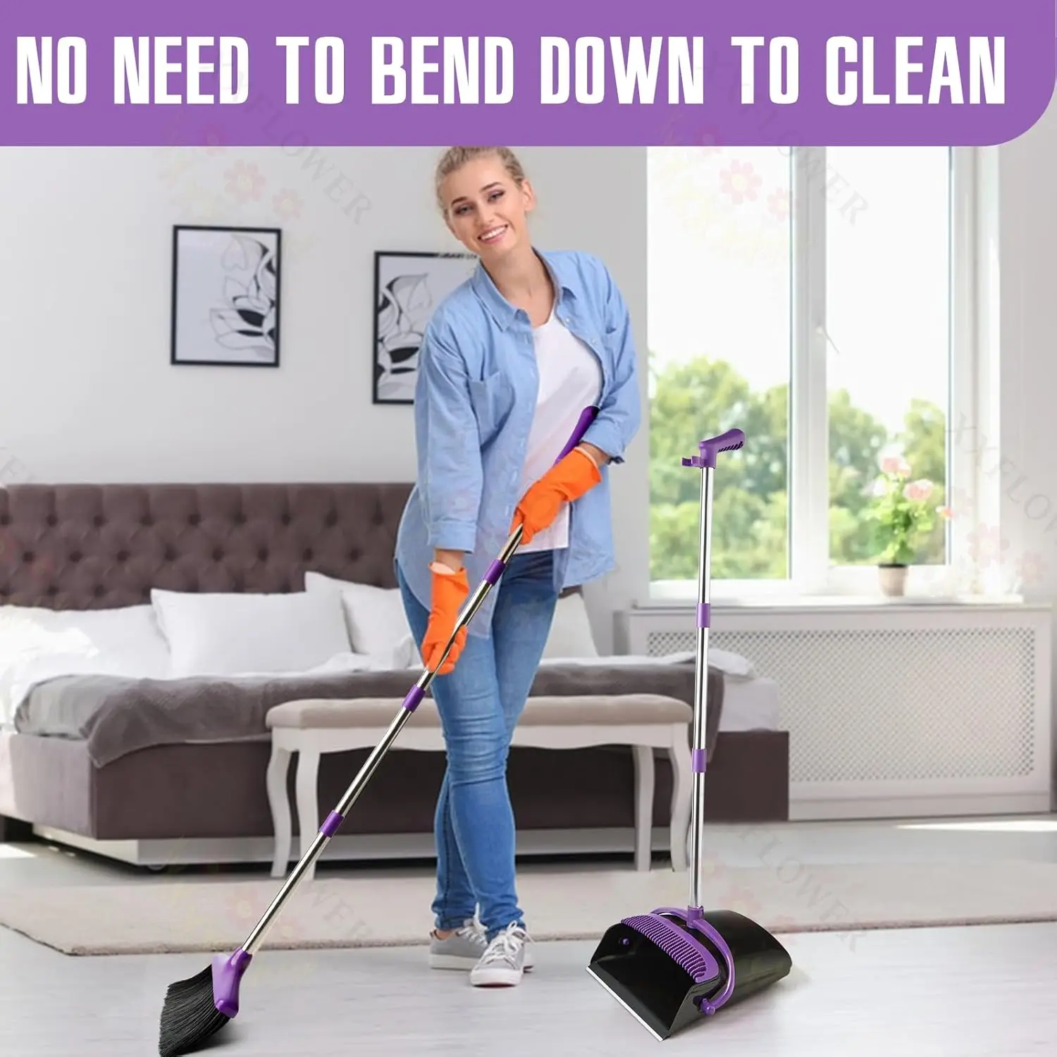 Discover the ultimate cleaning solution with our long handle broom and dustpan set, designed to make your daily chores easier and more efficient. This versatile combo is perfect for a variety of settings, from homes and offices to kitchens and pet areas. Key Features: - Extended Handle: With a total length of 55.3 inches, this set features high-quality stainless steel poles that are rust-resistant, solid, and lightweight. The five extension poles allow you to customize the handle length to suit different users, including children, adults, and those with back pain, enabling comfortable sweeping without bending. - Enhanced Cleaning Performance: The dustpan offers a large space with heightened baffles on both sides to hold more rubbish securely and prevent spillage. Thoughtful broom teeth are specially designed to quickly clean hair from women or pets without getting tangled on your hands. Upgraded four-layer bristles made of PET material are robust and stiff, effectively handling heavier garbage. - Easy Assembly and Storage: Simply screw the extension poles into place for quick installation. The dustpan can be stored upright in narrow spaces to keep your room tidy or hung for convenient storage options. - Wide Application: Ideal for sweeping paper, dust, dirt, hair, and pet hair in various environments. As a bonus, we include a mini broom and dustpan set perfect for cleaning desktop rubbish or as a fun tool for children's DIY projects; it also supports hanging storage. - Eco-Friendly Packaging: Packaged in environmentally friendly materials with one broom and dustpan per box. After-Sale Support: We stand behind our products with reliable customer service. If you have any questions or concerns about our items or services, please reach out—we're here to help resolve any issues promptly.