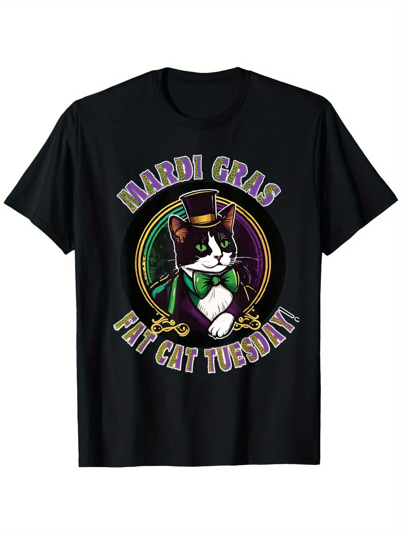 Men's 100% Cotton Mardi Gras Tee - Tuxedo Cat "It's Tuesday" Graphic, Black Casual T-Shirt for Parties \u0026 Cat Lovers