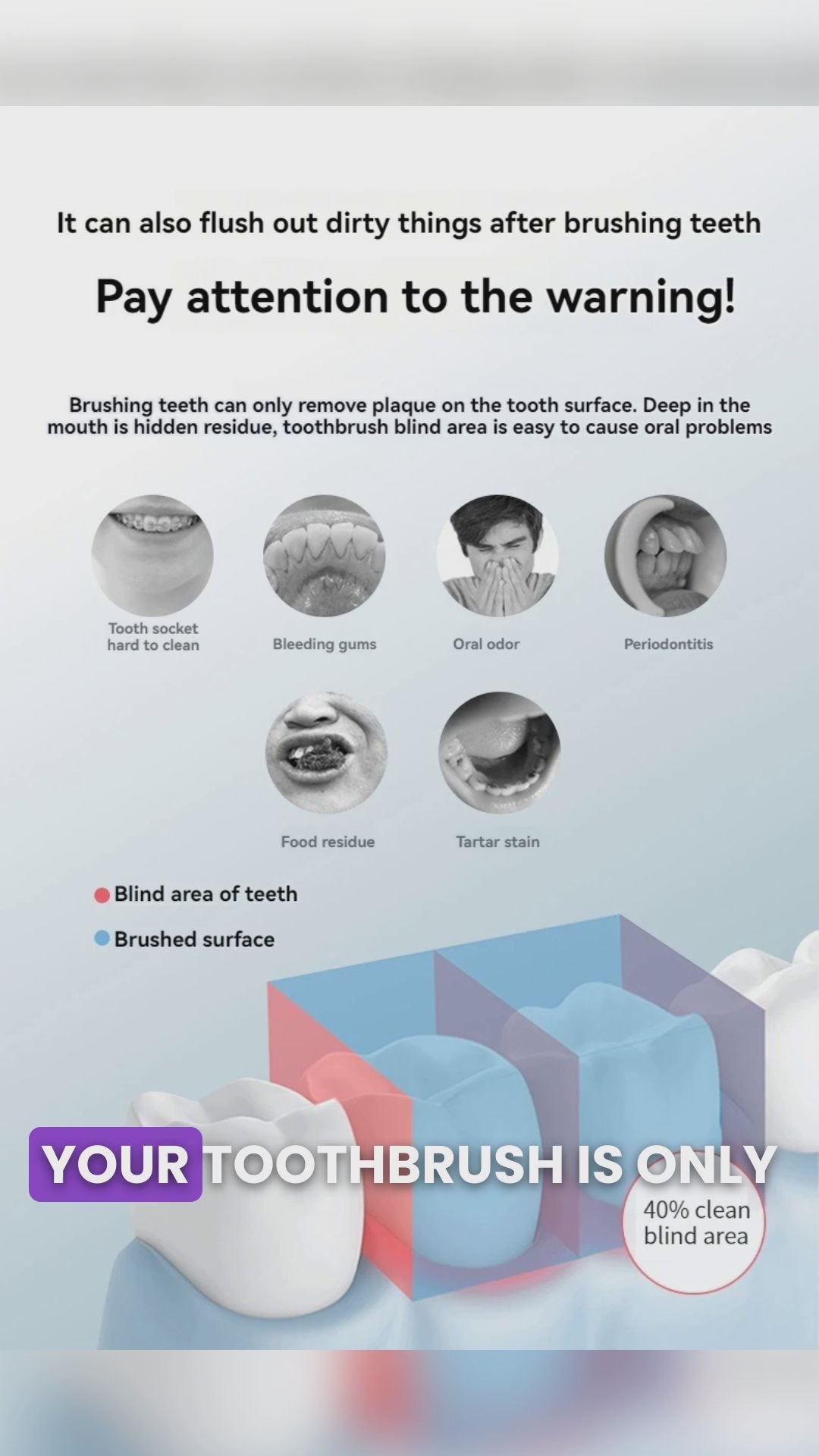 • High Pressure Oral Irrigator :This portable dental tool effectively cleans your teeth, reaching areas that brushings cannot, preventing cavities and gum disease.
