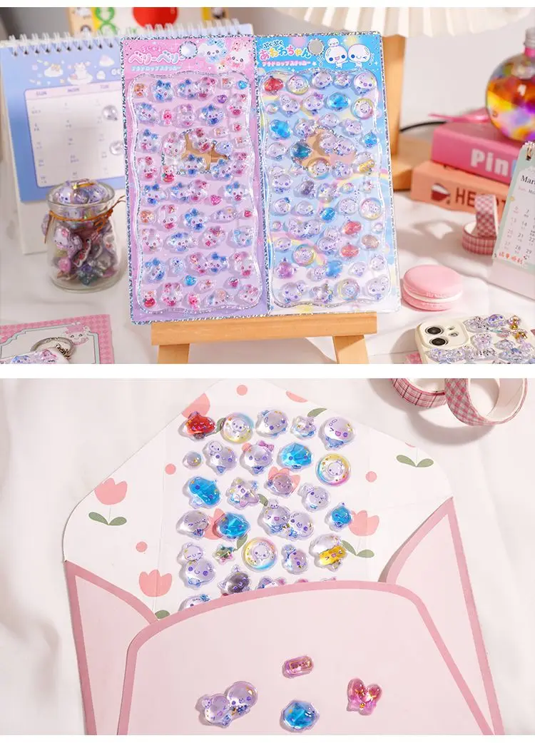 Original Cartoon Water Drop 3D Relief Stickers Cute Refrigerator Sticker Girl's Handbooks Decoration Creativity Reward Toy Gift
