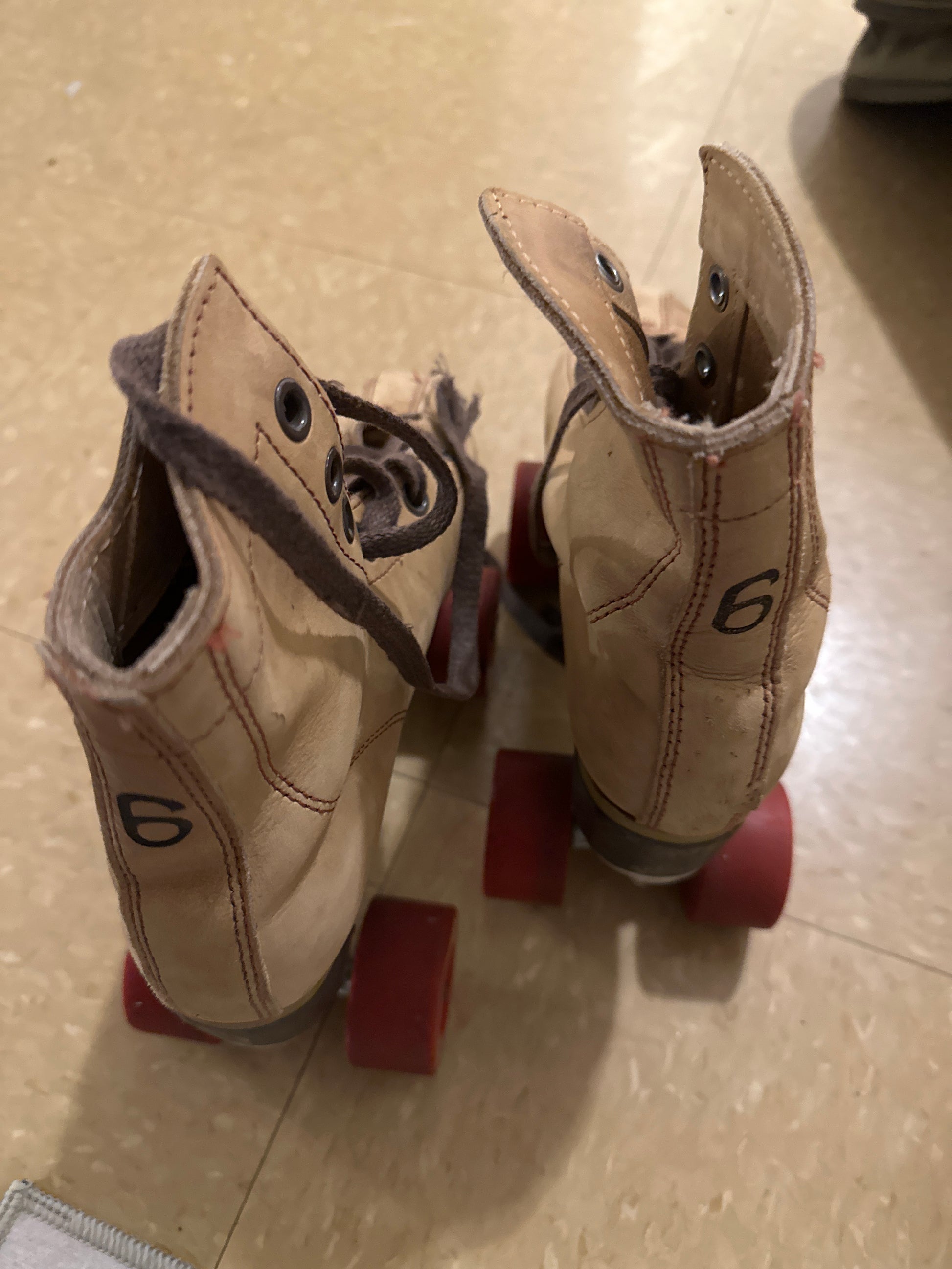 Sure-Grip brand skates, specifically models such as the Sure-Grip 140 rental boot, 1300 Super X, or the popular Boardwalk tan suede outdoor skates. The specific model in the image appears to be a vintage version, likely with a suede upper and a "Sure Grip" or "Super X" plate, often associated with the brand's early designs.