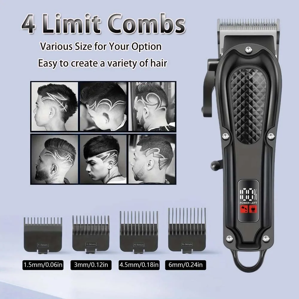 Professional Cordless Hair Clipper for Men Electric Barber Clipper & Trimmer Rechargeable Men's Hair Cutting Tools
