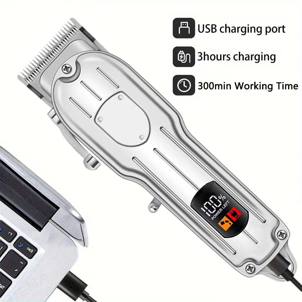 Professional Men's Cordless Electric Clipper, T-Blade Beard Trimming Kit, Haircutting Set with LED Display, Gift for men